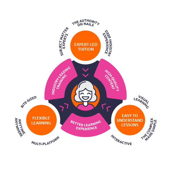 Diseñamos la ética de NailKnowledge en torno a tres valores clave. aprendizaje flexible que era fácil de entender y dirigido por expertos - con el alumno en el centro de todo lo que hacemos.